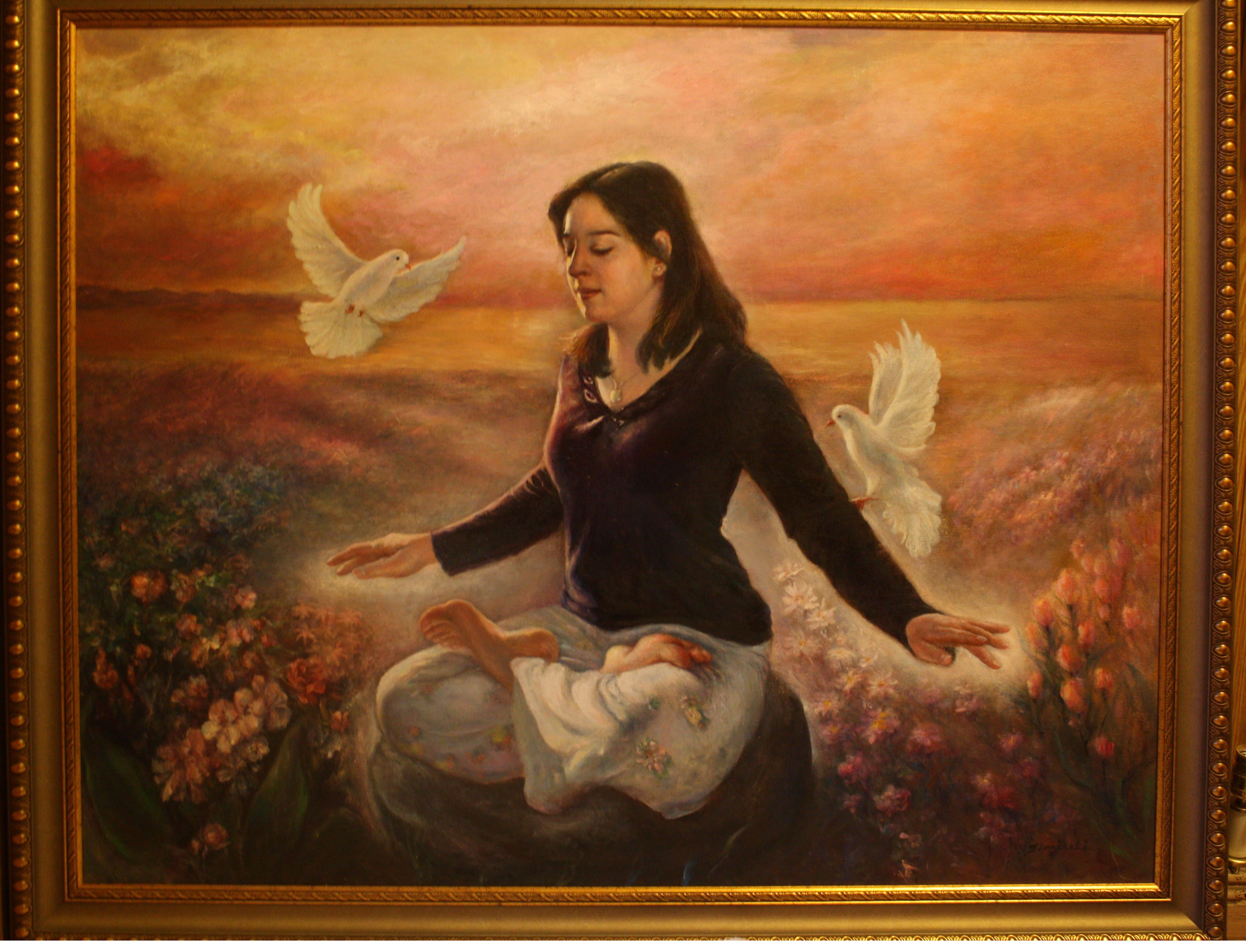 “SOS”: This painting above depicts a real person. She is a Western Falun Gong practitioner. When the Chinese Communist Party started its persecution of Falun Gong practitioners, she went to Beijing to clarify the truth to the Chinese people.