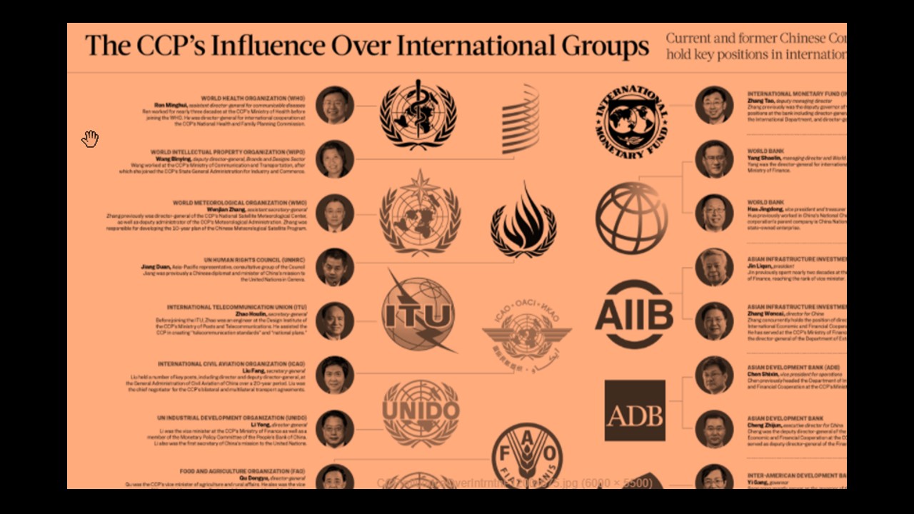 The Red Chinese are everywhere. They practically dictated the World Health Organization’s responses to the Wuhan Flu pandemic.