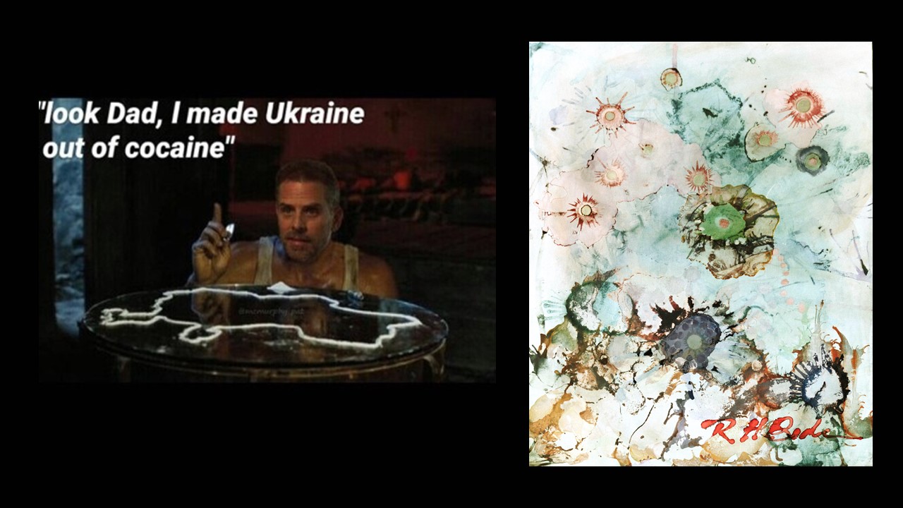 This tennos, by Red Was Iceblue (Wise’s Modernist, PostModernist and New Millennial art critic) immediately jumps in to the double standard world of social media (the modern mob), the euphemistic “pith”, and the corruption of the artworld and the Biden family generally. [This tennos focuses only on Hunter Biden’s art, and only vaguely alludes to his notorious corruption in Ukraine, Communist China, and America, with the “money” not being “traced”.] Another art critic, embedded in the poem, is Kimes, who smartly brings in contemporary business and artistic vision to lambaste Hunter Biden’s art—not that all these critics and painters themselves are without visions also critically assailable. Finally the last two couplets display Hunter Biden’s artistic goals and media, i. e., the straws and brushes. The final couplet contrasts the “fine self portrait” with “the fifty-one-year-old”, youthful only in his artistic maturity. The actual last quote of Hunter Biden’s plays off on the discrepancy between the deadpan PostModernist phrasing “kind of trying to bring forth what is” with “the truth”.