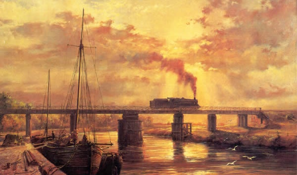 Featured Image: Steam Engine Crossing the River Douglas. Artist Unknown.