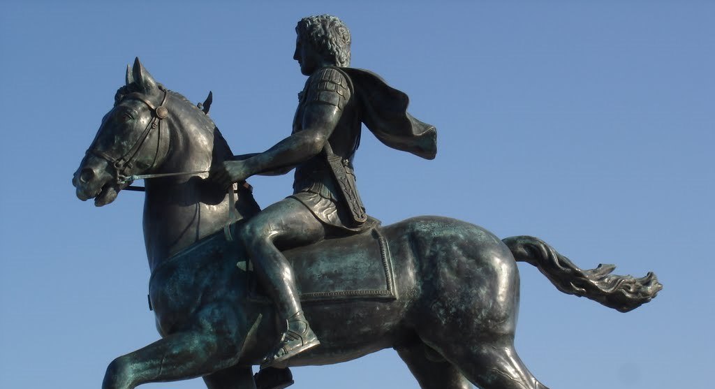 Featured Image: Statue of Alexander the Great riding Bucephalus and carrying a winged statue of Nike (square of Alexander the Great) in Pella city. (Wikimedia Commons).