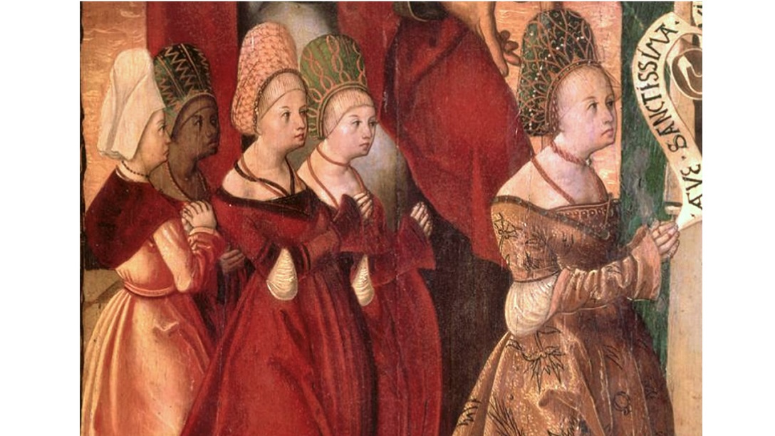 Yael, I’m happy the poems and the history brightened your day! Although I found this illustration and suggested it to Evan, I do not have any idea why the women in it have unsmiling facial expressions. The painting is part of the elaborate decoration of the treasure room in the town hall of Goslar, near Hanover in Germany. It is dated 1501-1515. The large treasure room may have served as a municipal chapel, and perhaps the artist considered these expressions suitable for being in church. The woman on the right is the Blessed Virgin Mary herself, as we can see by the banner “Ave Sanctissima” (“Hail, most holy one”), and by the pearls that make her headdress richer than that of the sibyls following her. Of the four sibyls, the dark-skinned one can be identified as the Libyan sibyl. Libyca is often represented as black because of her residence in Africa, though her origin was Greek, as I said in the sonnet based on the little we know of her.