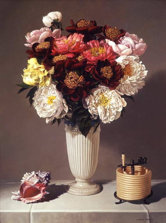 PEONIES, SHELL, AND COILED CANDLE: AFTER STONE ROBERTS