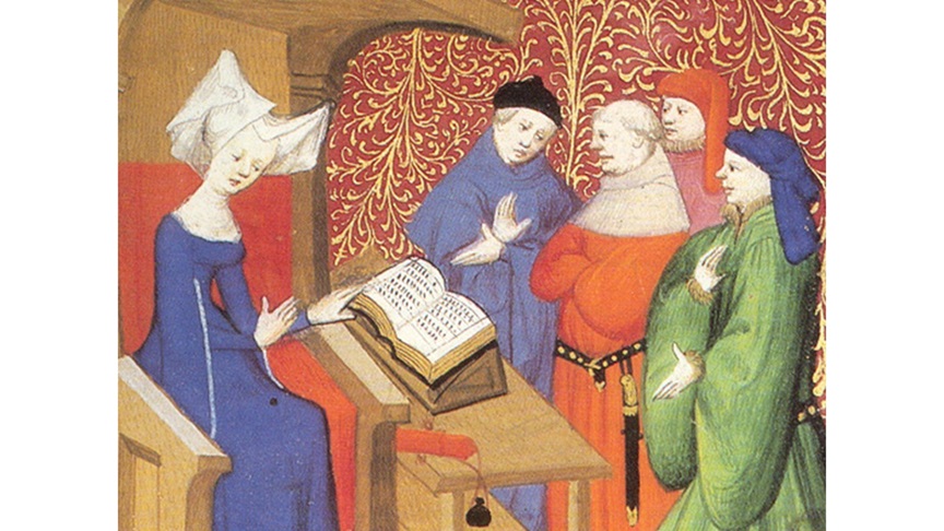 Thank you, Roy. The fine young husband’s name is Estienne [Stephen] de Castel. He and Christine were happy for ten years, but then he fell victim to an epidemic, and she began writing to support three children. I too hope he heard this poem of praise, which is certainly in the present tense.