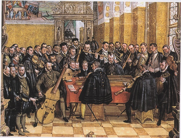 Orlando di Lasso and musicians in chapel service at the court of Duke Albert V of Bavaria (detail), by Hans Mielich (after 1558; by 1570)